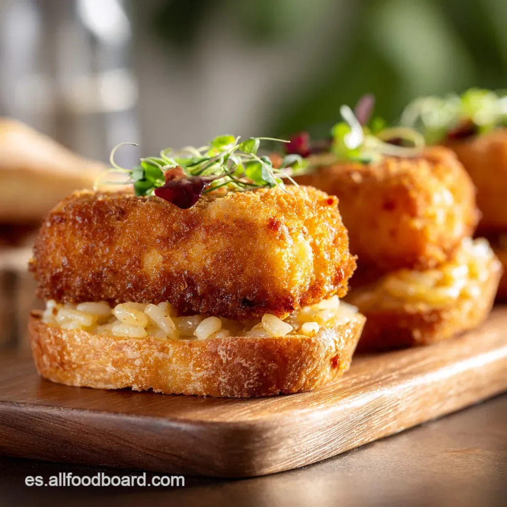 Una mayonesa de ajo casera ( Alioli ) es el acompañamiento clásico y robusto que estos bocadillos merecen. Si prefieres algo más fresco, una salsa brava ligeramente ahumada o incluso un poco de salsa romesco funciona de maravilla. Estos bocadillos son excelentes como tapa , pero si quieres convertirlos en una cena completa, sírvelos con una ensalada de tomate fresco. Si te gusta esta idea de croquetas de aprovechamiento, deberías probar mi receta de Receta de Frijoles con Arroz Relleno Croquetas Doradas Cocina Casera . ¡Son una locura!