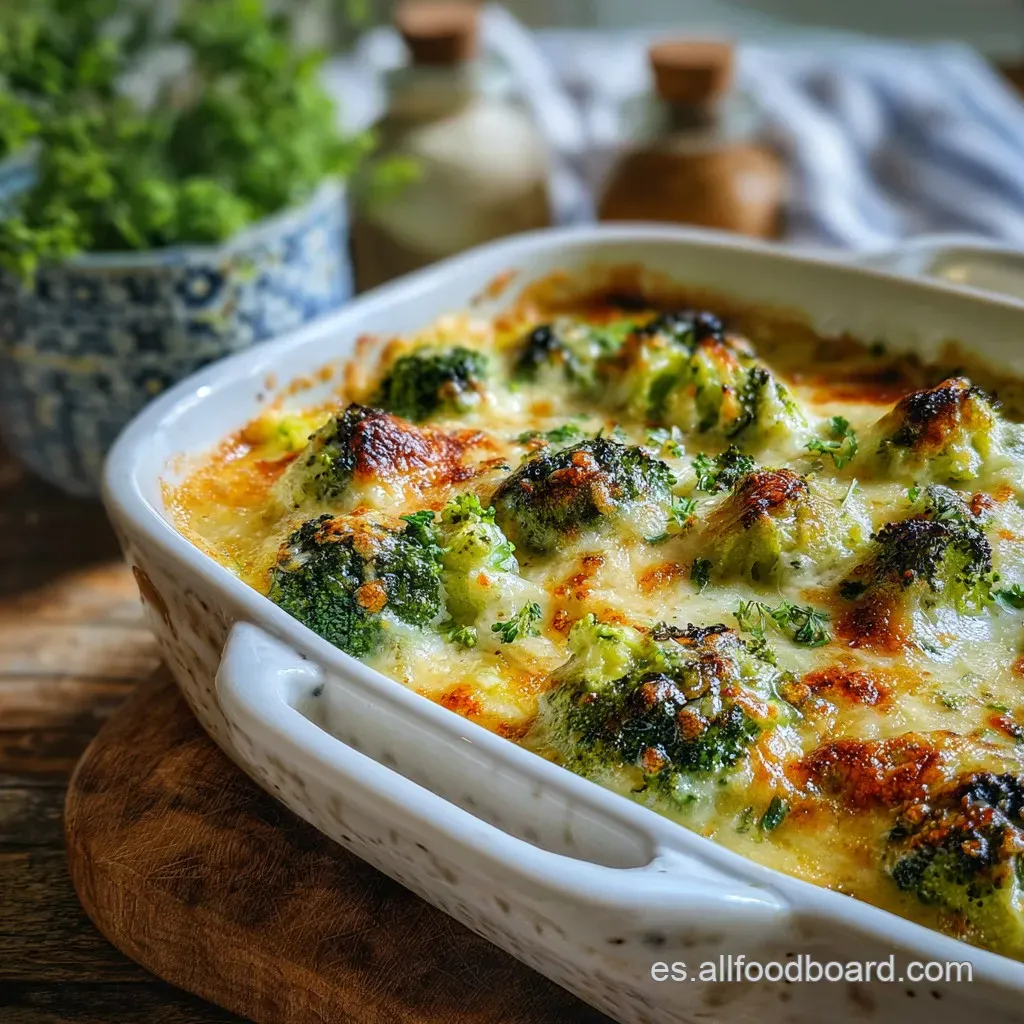 Cocina el brócoli en dos etapas. Un horneado inicial rápido antes de añadir la salsa y el queso ayuda a que el vegetal se cocine al dente, manteniendo su firmeza. Para aprender más sobre texturas de vegetales, puedes consultar nuestra receta de Brócoli Tostado Crujiente que usa una lógica de calor alto para texturas.
