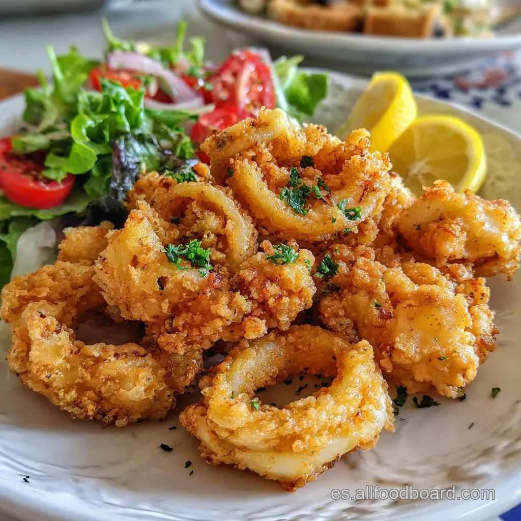 Si reduces la receta a la mitad, el proceso es idéntico, pero ten cuidado con el aceite: al haber menos cantidad en la sartén, la temperatura subirá mucho más rápido y podrías quemar la harina. Si por el contrario decides doblar las cantidades, recuerda que las harinas pierden efectividad si se humedecen con el reposo, así que enharina solo lo que vayas a echar a la sartén en ese preciso instante. Para otras variantes, siempre puedes consultar mis Calamares Encebollados receta si buscas algo más meloso.