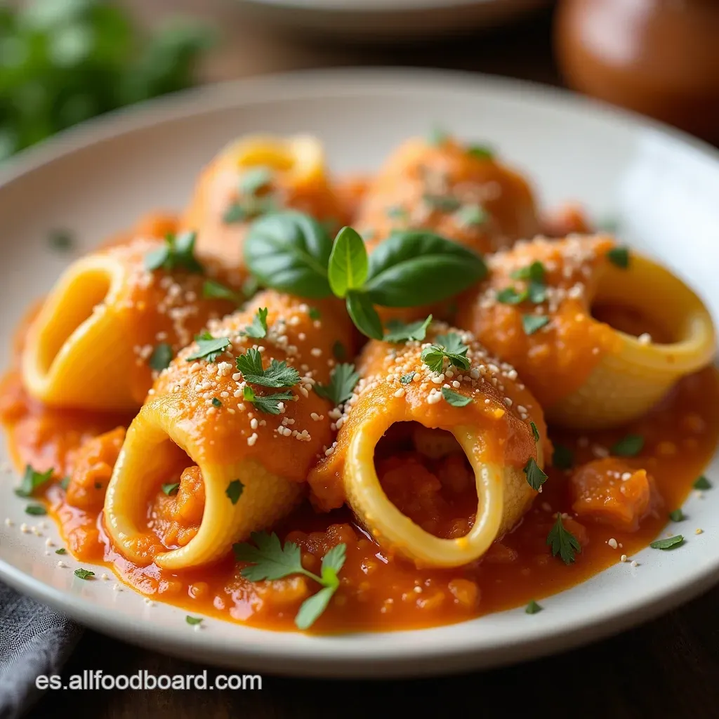Imaginen la textura perfecta de la pasta gigante, actuando como un pequeño recipiente comestible, listo para contener un relleno jugoso y profundamente reconfortante. Este es un plato principal con pasta diseñado para celebrar, para compartir, o simplemente para darse un gusto exquisito en una noche tranquila.