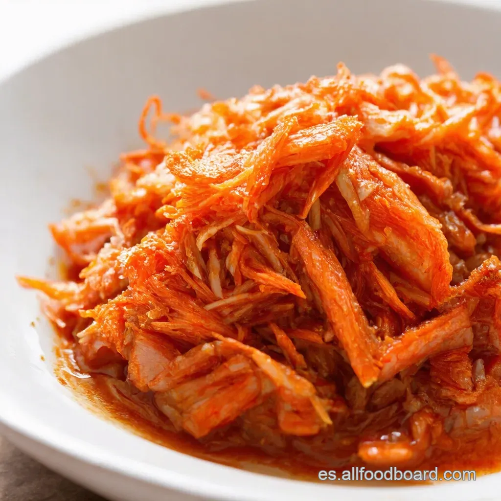 El gochugaru es fundamental. ¡Es lo que le da ese color rojo intenso y ese sabor picantón que te engancha! El ajo y el jengibre son la base de casi toda la comida coreana , ¡y aquí no podían faltar! Y la salsa de pescado.
