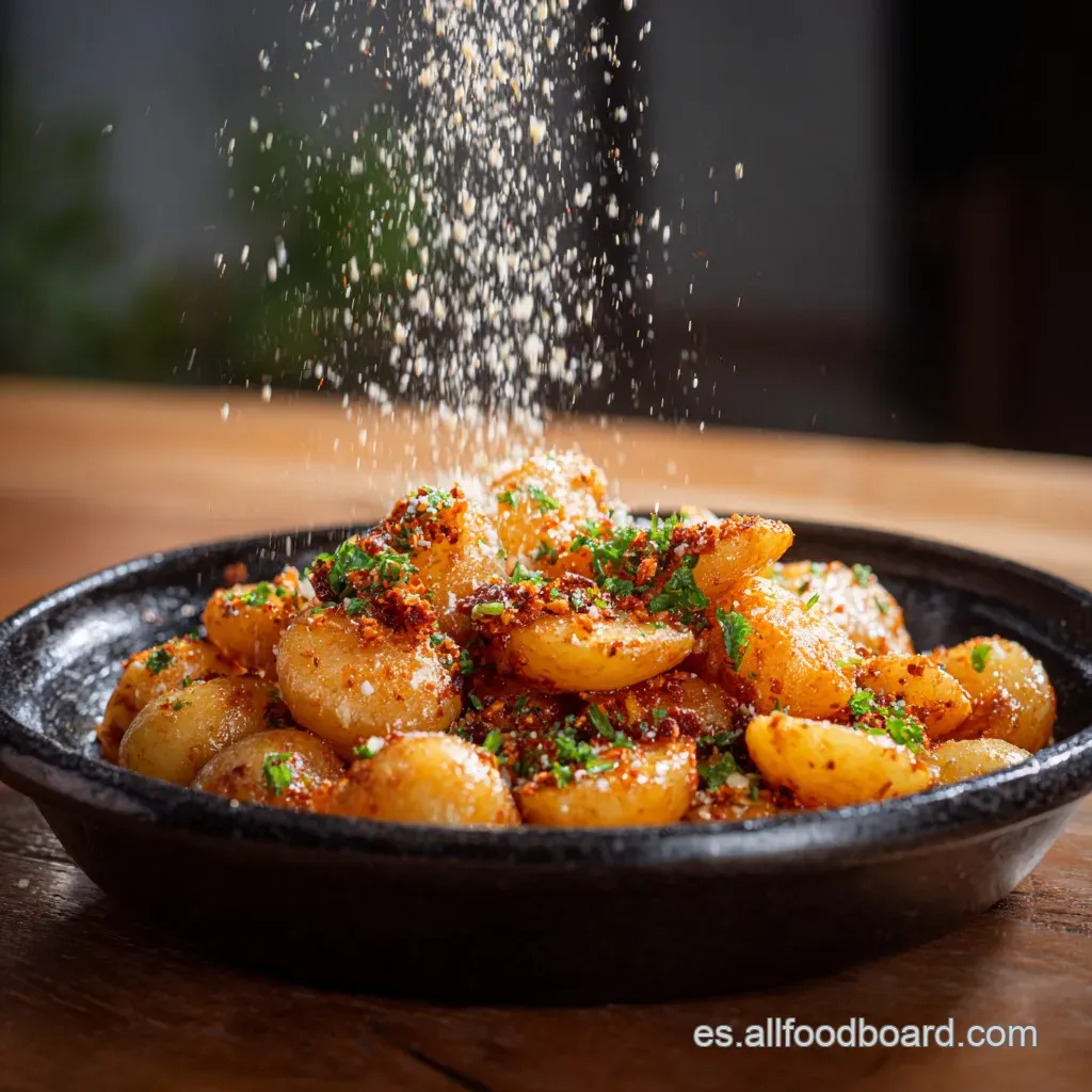¿Sabes ese sonido? El crack crujiente que hace la papa cuando la muerdes. Y luego ese aroma de ajo tostado mezclado con el pimentón ahumado de la Vera. Es una locura de texturas.