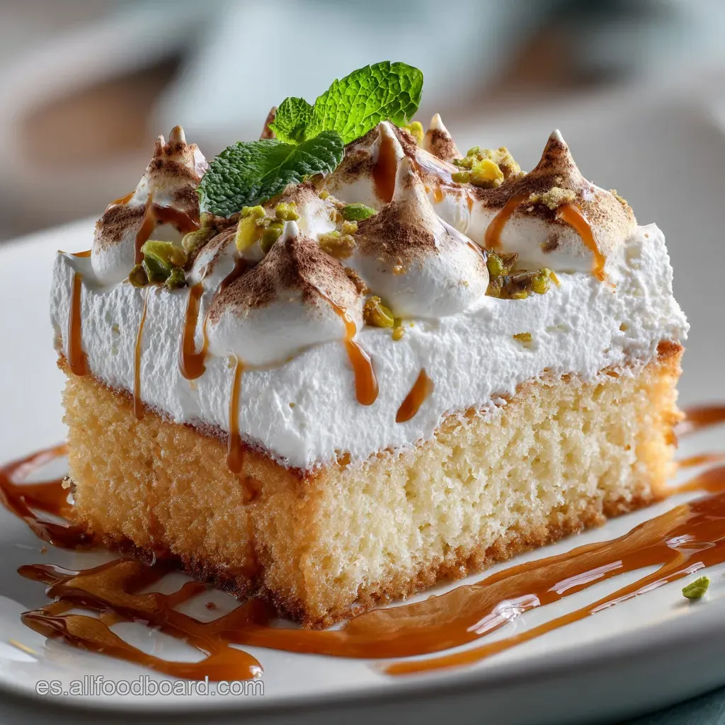 El Pastel de Cuatro Leches lleva un extra de líquido, que suele ser leche de coco (para un toque caribeño) o un poco más de crema de leche o nata, lo que resulta en una textura aún más indulgente y untuosa.