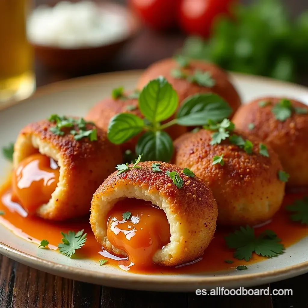 Para balancear la riqueza del relleno, te recomiendo algo ácido o ligeramente dulce. Una salsa de mostaza y miel (como la que usamos para las nuggets de feria) siempre funciona.